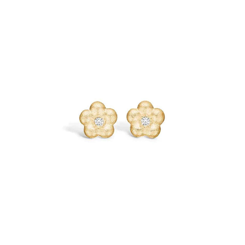 Beskrivelse: Nydelig ørepynt blomst med litt børstet overflate i sølv, fra kolleksjonen Love and Joy