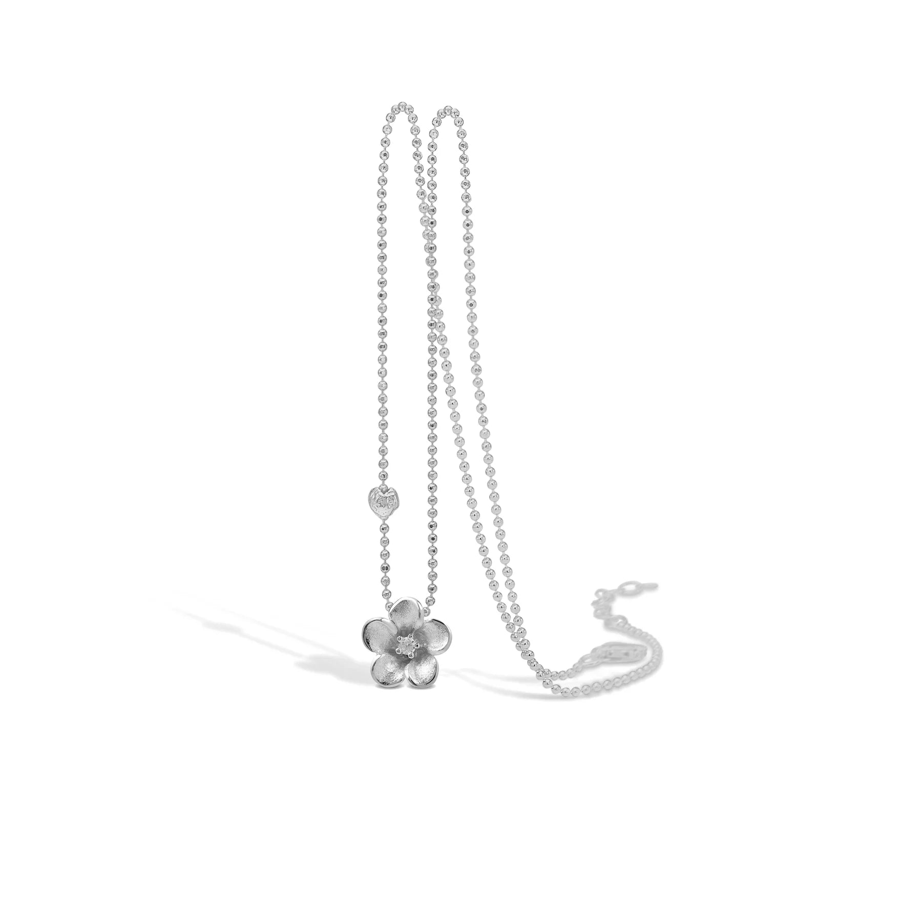 Beskrivelse: Nydelig halsbånd med motiv av en Frangipani blomst