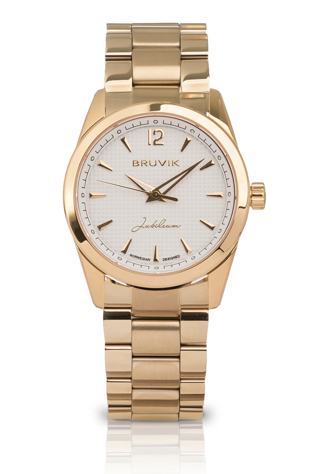 Bruvik Jubileum er et gullur til alle anledninger. Uret har lokal tilknytning til Bergen og omegn fordi designeren selv har opphav fra Bruvik på Osterøy og har gitt klokkene samme navn