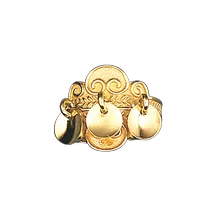 Beskrivelse: Bunadsring i forgylt sølv med tre, forgylte lauvheng og tradisjonsrik filigrandekor. Ringen er regulerbar i størrelsene 54-56. Passer til bunader med forgylt og lyst bunadsølv