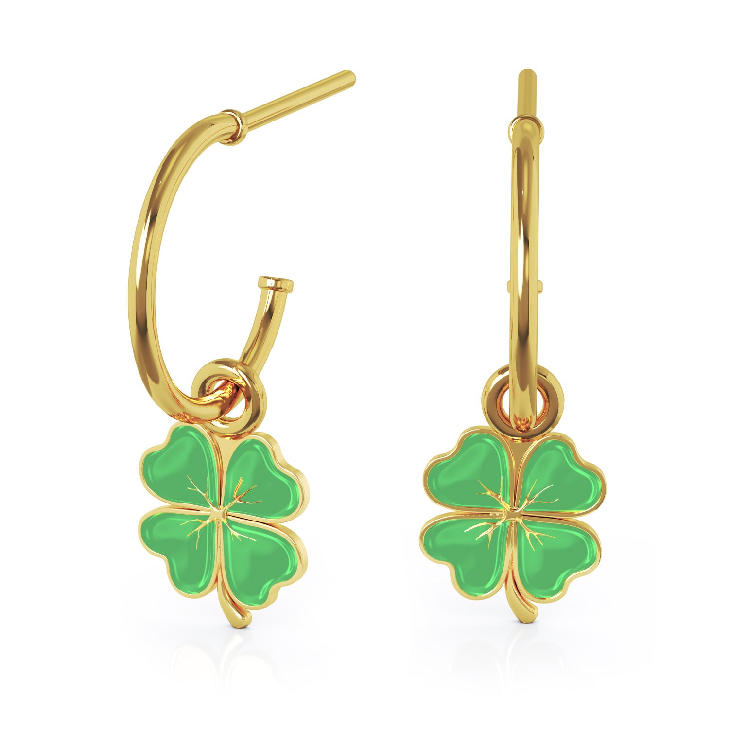 Beskrivelse: Nydelige små øreringer i forgylt sølv, med heng av Firkløver