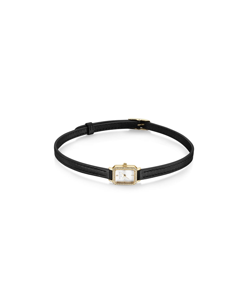 Materiale: Stål og skinn. Det sitter små, glitrende steiner rundt selve tallskiven